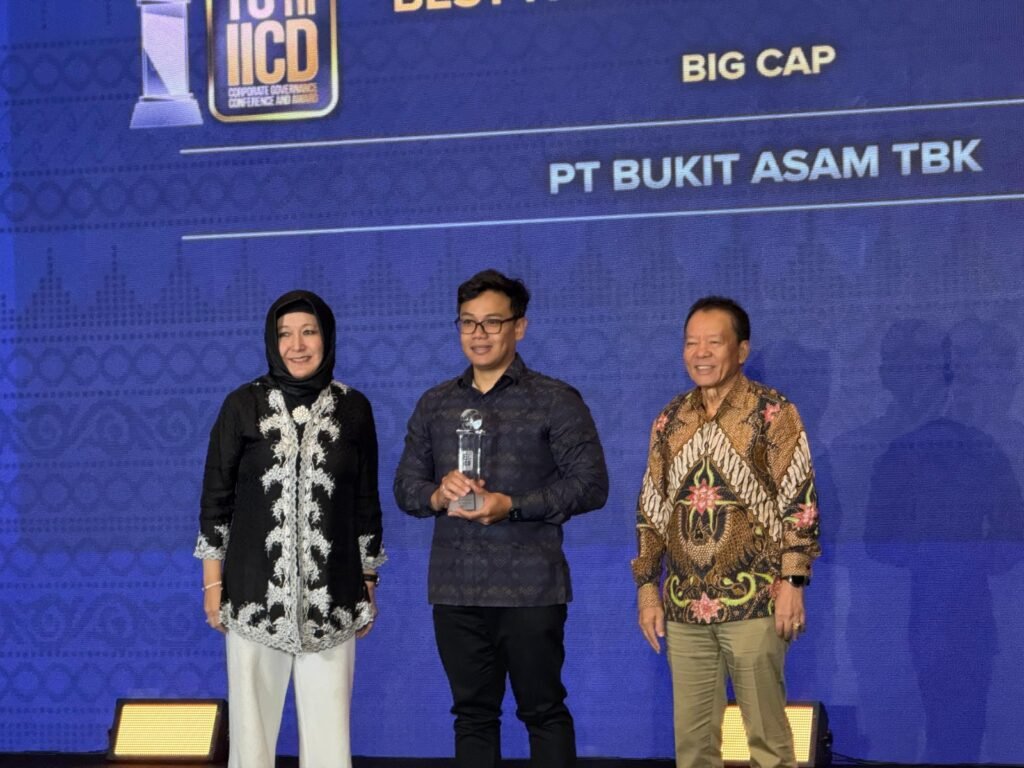 Jakarta, rubrikinicom – PT Bukit Asam Tbk (PTBA) meraih penghargaan Best Non-Financial Sector Big Cap dan Top 50 Big Capitalization Public Listed Company pada ajang The 16th IICD Corporate Governance Conference & Award 2025, yang berlangsung di Ballroom Pullman Hotel, Jakarta, Senin (15/9/2025).